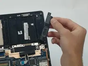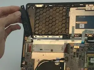 С помощью пинцета отсоедините динамики с левой стороны ноутбука.