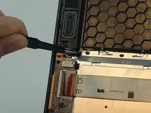 Пинцетом аккуратно оторвите ленту, удерживающую провода, соединяющие оба динамика.