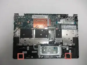 Отключите жгут проводов с левой стороны компьютера, чтобы отсоединить динамики от материнской платы.
