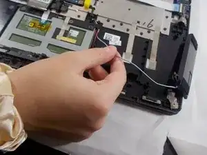 Отсоедините провода динамиков от материнской платы, аккуратно вытащив белый разъём из гнезда.