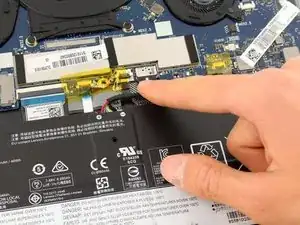 Удерживая белый разъём динамика пальцем и лопаткой, потяните прямо назад, чтобы отсоединить кабель динамика.