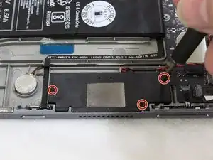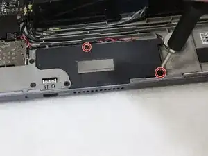 Отверткой JIS #00 отвинтите два винта длиной 8 мм, которые крепят левый динамик.