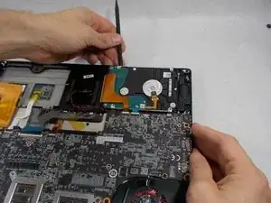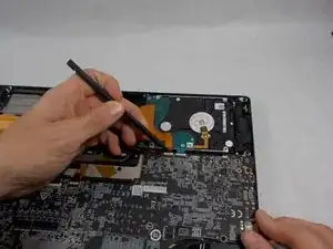 Вставьте лопатку между жестким диском и устройством и нажмите, чтобы разъединить их, затем извлеките жесткий диск.
