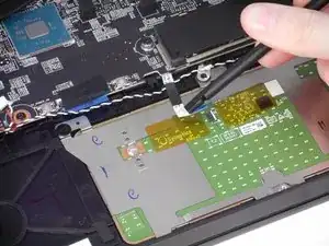 Пошевелите синюю пластикую монтажную лопатку, проводя ею по периметру задней крышки, чтобы отделить её от корпуса ноутбука.