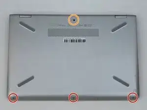Используя крестовую отвёртку #0, удалите винт длиной 8 мм под каждой из резиновых ножек.