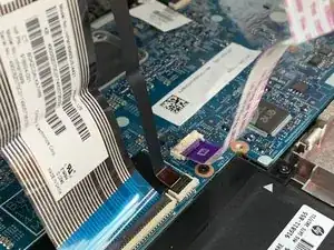 Отведите провод от места подключения, чтобы полностью отключить кабель сенсорного экрана от материнской платы.