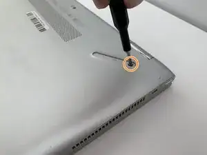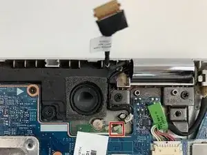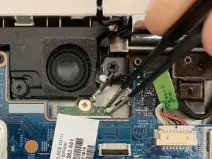 Используя отвёртку Phillips №1, удалите три винта длиной 5 мм, которые крепят динамики к основанию ноутбука.