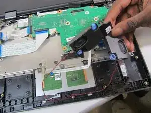 Используйте инструмент открывания iFixit, чтобы отсоединить кабель правого динамика от материнской платы.