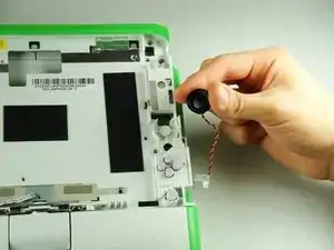 Вытащите два динамика и аккуратно протяните провод через отверстие наружу.