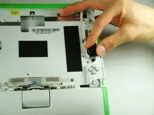 Оттяните фиксирующие защёлки в направлении зелёных внешних краёв ноутбука.