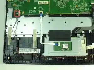 Отсоедините черный кабель динамика от нижней левой части материнской платы.