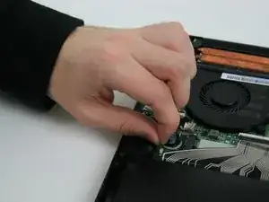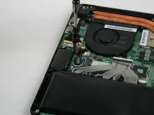 С помощью крестообразной отвертки Phillips #0 отвинтите два винта, фиксирующие динамик.