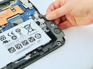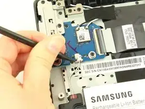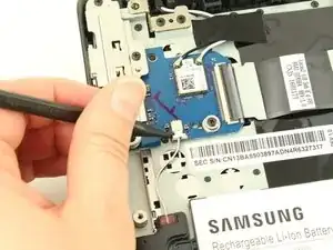 Используйте пластиковую лопатку, чтобы осторожно отсоединить кабельный разъем от материнской платы и левого динамика. После отсоединения удалите динамик.