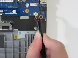 Снимите динамик, подняв его и отведя от корпуса ноутбука.