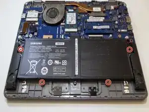 Снимите четыре винта 3 мм, удерживающие аккумулятор, используя отвертку J0.