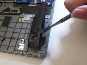 Вставьте инструмент для поддевания между динамиком и корпусом Chromebook.