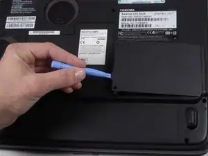 Пластиковым инструментом для вскрытия подденьте по периметру весь ноутбук, чтобы отделить верхнюю часть корпуса.
