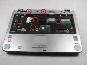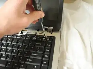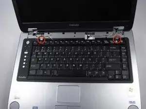 Снимите два винта 3.67 мм с верхних углов клавиатуры.