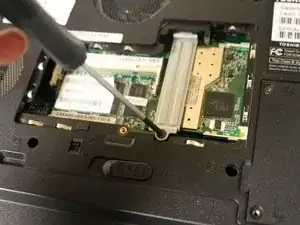 Снимите два винта 8.6 мм в задних углах ноутбука.