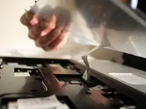 Не пытайтесь полностью извлечь клавиатуру — она всё ещё подключена к материнской плате.