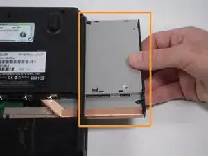 Используя углубление, вытолкните оптический привод из ноутбука и извлеките его.