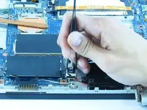 Используйте пинцет или пальцы, чтобы отсоединить динамики от материнской платы.