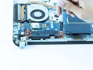Удалите следующие два винта длиной 7 мм с помощью отвертки Philips #0.