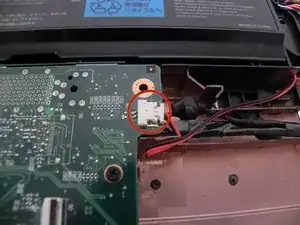 Чтобы снять левый динамик, следуйте руководству по ремонту материнской платы, чтобы выполнить этот шаг и сохранить краткость данного руководства.