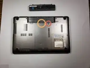 Отверткой Phillips снимите винты 6 мм по краям. Затем снимите винт 6 мм, удерживающий оптический привод. Могут потребоваться дополнительные действия: для завершения этой части процесса может потребоваться удаление двух дополнительных винтов 6 мм слева и справа непосредственно над отсеком для жёсткого диска.