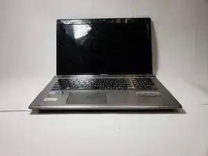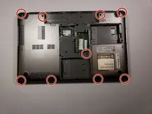 Переверните ноутбук, чтобы начать процесс снятия клавиатуры.