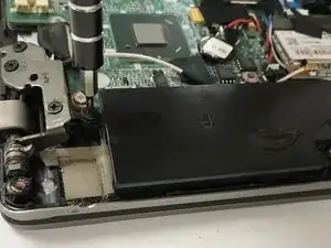 Снимите левый динамик.