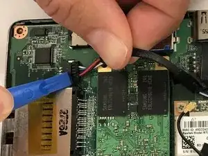 Отсоедините этот разъём от материнской платы, чтобы не повредить плату или кабель разъёма зарядки.