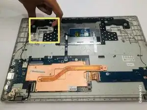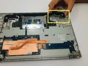 - Осторожно не прикасайтесь к другим деталям внутри Chromebook.