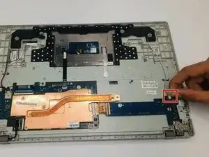Отключите золотую ленту, соединяющую аккумулятор с материнской платой.