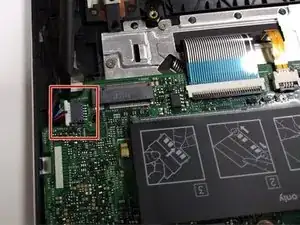 Отсоедините кабель, который соединяет динамики с материнской платой.