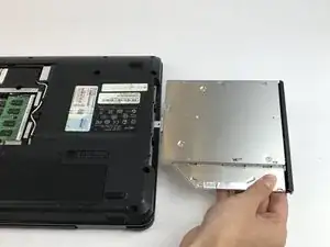 Осторожно отодвиньте дисковод от устройства, как показано.