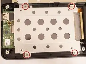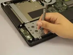 Используйте отвертку Phillips #0, чтобы выкрутить два винта Phillips 7 мм с металлического держателя дисковода.