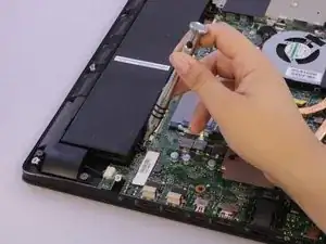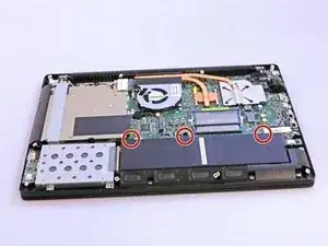 Используйте отвертку Phillips #0, чтобы выкрутить три чёрных винта Phillips 7 мм, удерживающих аккумулятор на месте.