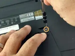 Удалите винт Phillips длиной 5 мм, который расположен под задней панелью.