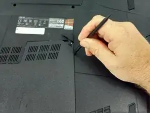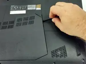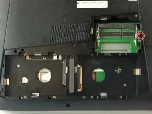 Выньте оптический привод, расположенный сбоку от ноутбука.
