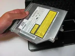 После удаления этого винта вы можете вытащить дисковод из ноутбука, потянув за него в направлении, в котором он выдвигается.