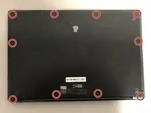 Начните с удаления 10 винтов на задней стороне ноутбука с помощью шуруповерта Phillips 1.