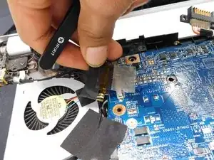 Не забудьте отсоединить кабель оперативной памяти внизу ноутбука. К нему также можно получить доступ и отсоединить через отсеки оперативной памяти на задней стороне.