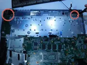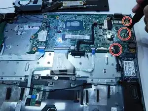 Отверните и снимите винты Phillips #00 длиной 1 см с материнской платы.