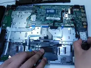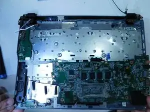 Снимите материнскую плату, сдвинув влево и подняв вверх.