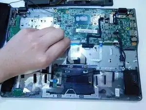 Потяните за синюю ленту назад, чтобы извлечь каждый кабель из материнской платы.