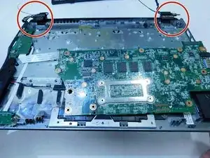 Отсоедините чёрный и белый кабели, находящиеся под материнской платой.