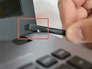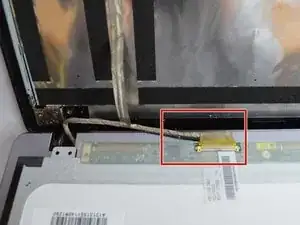 Поднимите экран с задней стороны ноутбука, и вы увидите кабель, подключённый к экрану.