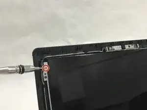 Удалите два винта 2.8 мм в верхнем правом и верхнем левом углу экрана, используя отвертку Philips #0.