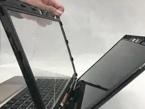 После удаления винтов вы должны суметь опустить дисплей. Будьте осторожны, так как есть соединение с материнской платой, которое нужно будет отсоединить.